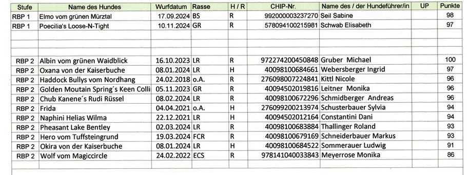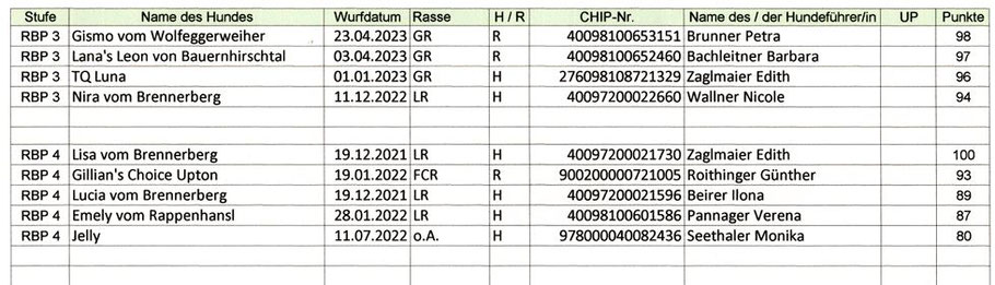 Erbebnisse FCI-ÖPO BH-VT