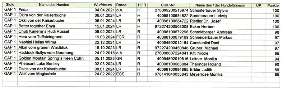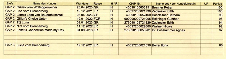 Ergebnis-Liste GAP 1-3 und SLP Plus, 8. September 2024